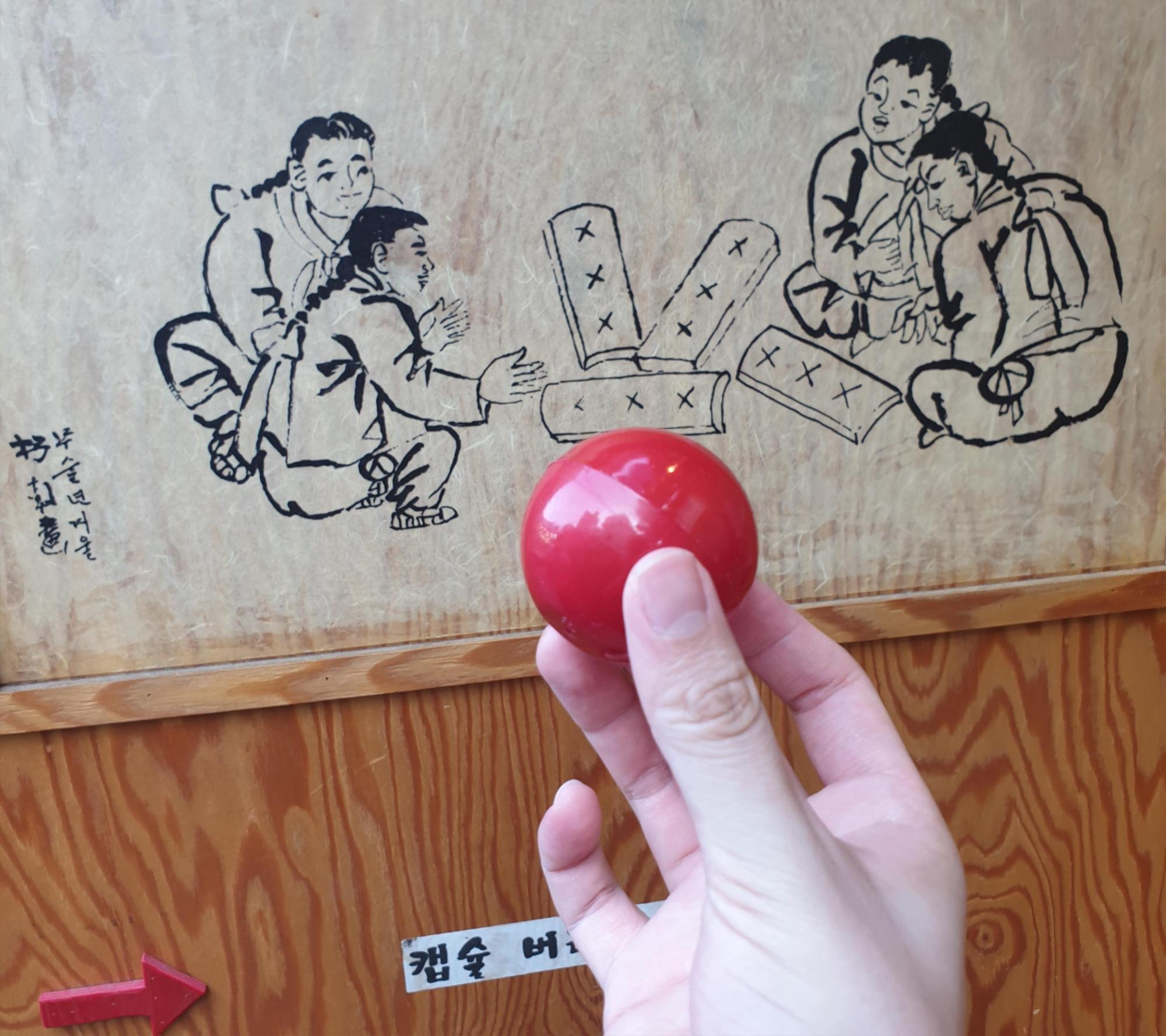나는 소띠이기 때문에 '소'자판기에서 캡슐을 뽑기로 했다. 캡슐을 뽑기 위해서는 천원을 먼저 자판기에 이용할 수 있는 코인으로 바꾼 후에 코인을 자판기에 넣고 돌리면 캡슐이 나온다.